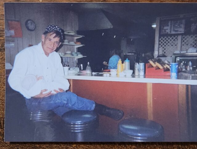 Daddy and Eme down at his place on Railroad Street.